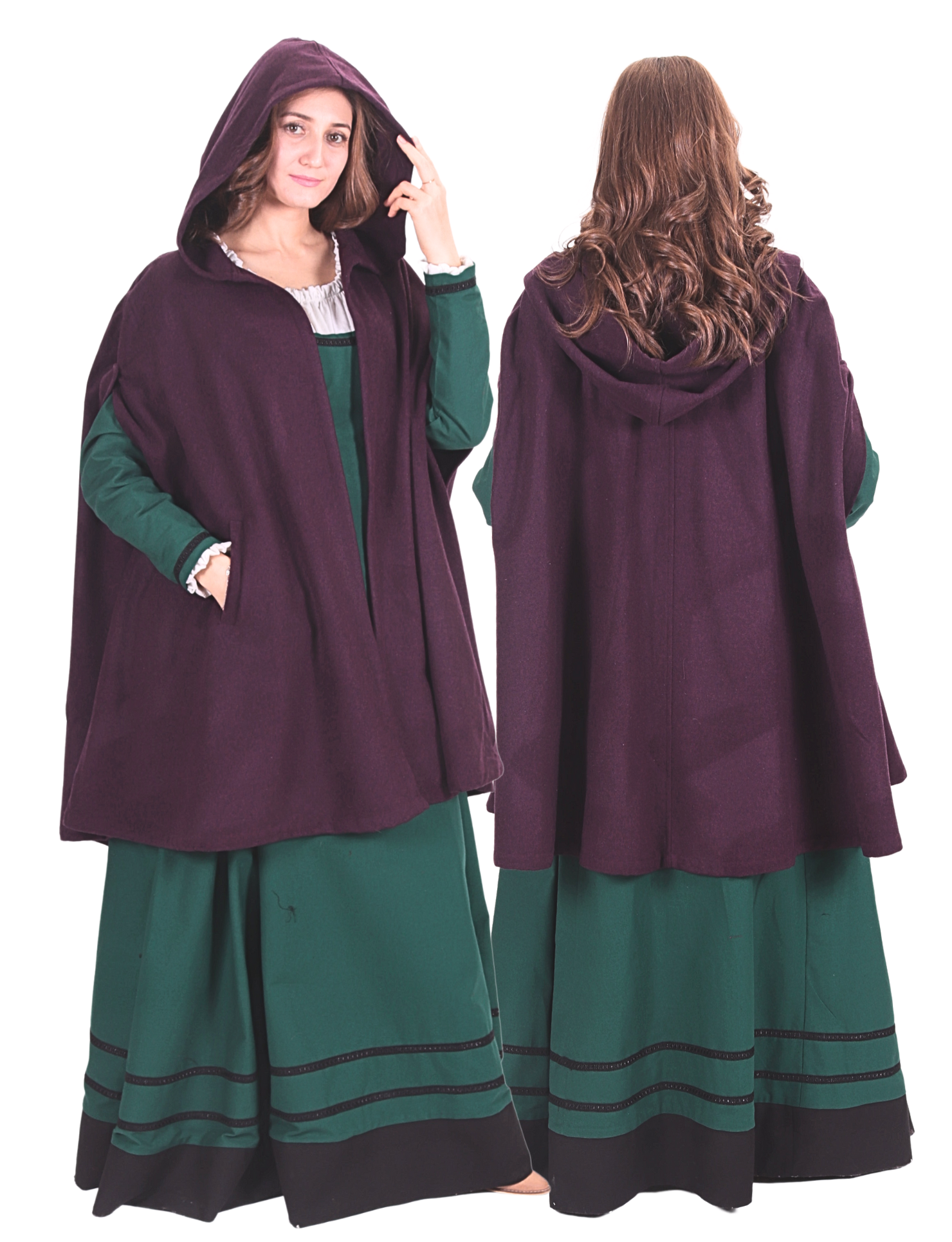 Mit praktischen seitlichen Öffnungen für die Arme und tiefen, nutzbaren Taschen ist der KELLY-Umhang praktisch für Veranstaltungen im Freien oder bei kaltem Wetter. Erhältlich in zeitlosen Farben – Grau, Burgunderrot, Schwarz und Lila – ist er eine hervorragende Ergänzung für jede mittelalterliche Garderobe. Bitte beachten: Die auf den Fotos gezeigte Brosche ist nicht im Produktpreis enthalten.
