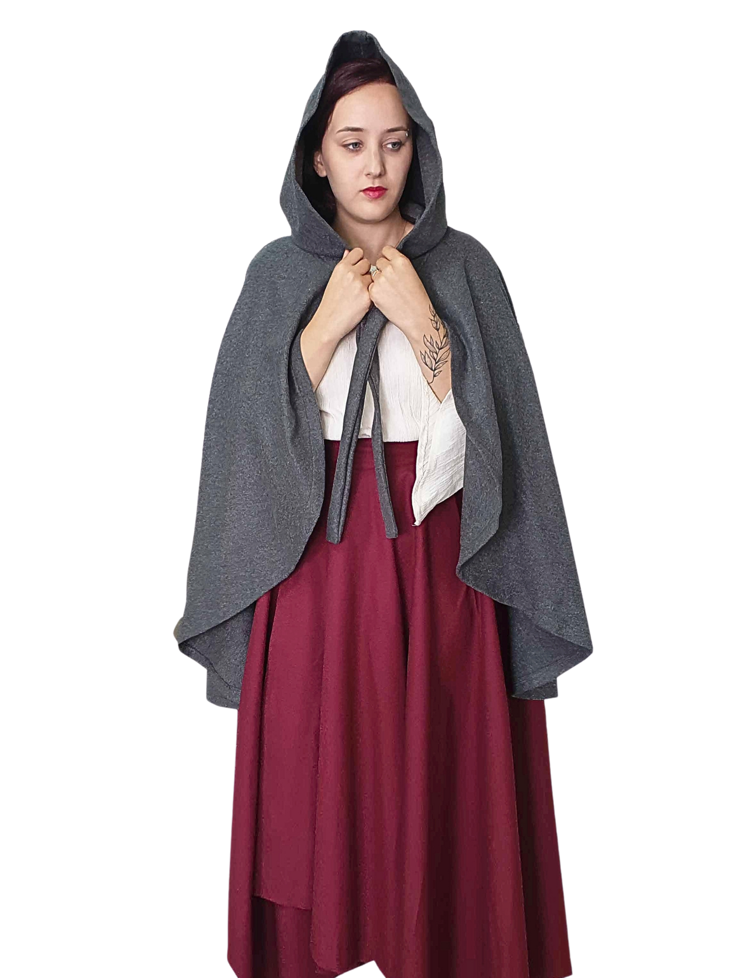 ANITA Grey Wool Riding Cape – Medieval Viking Woolen Cloak with Hood