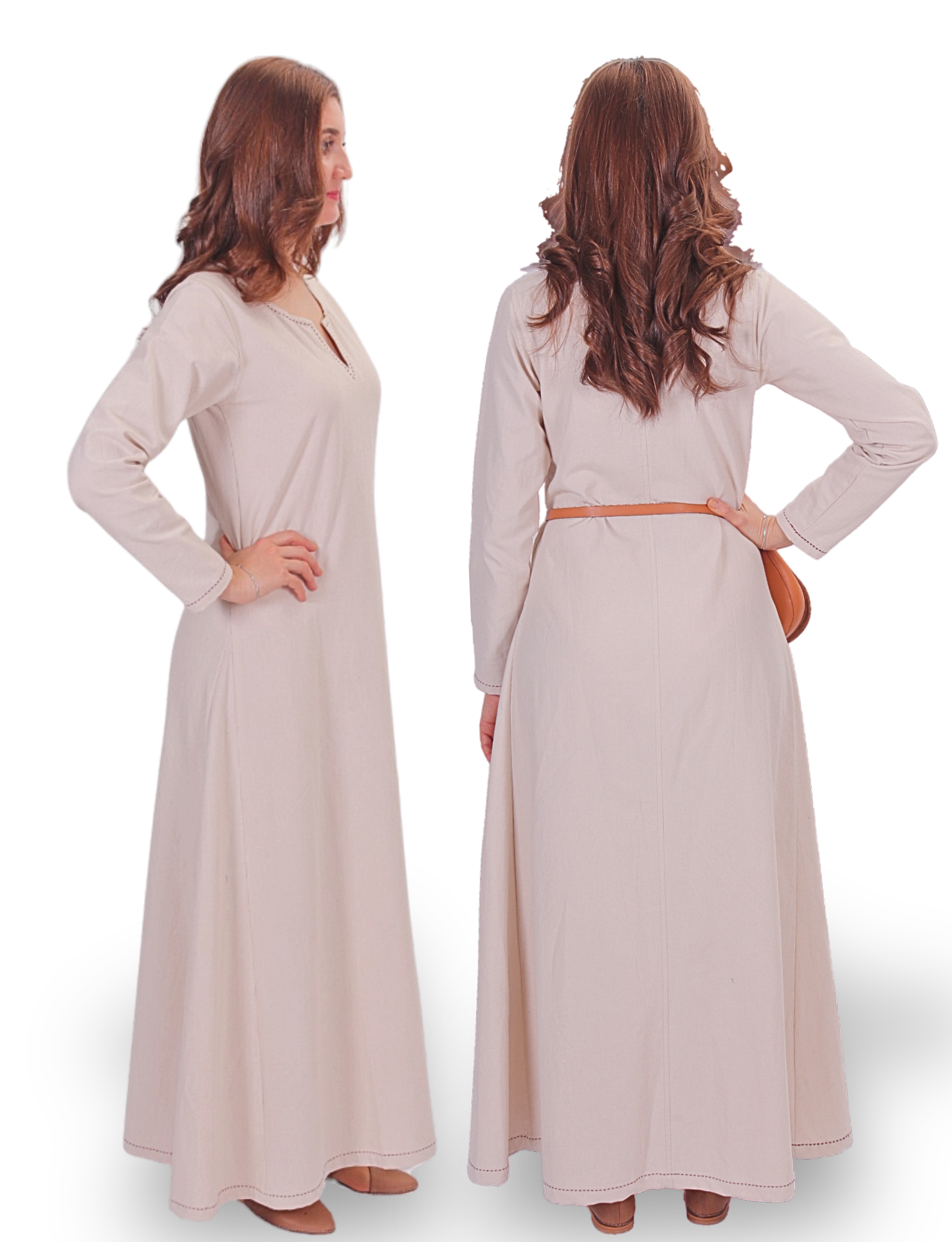 The FREYA underdress is a versatile medieval garment crafted from natural cotton canvas with a linen-like texture. Perfect for Renaissance fairs, LARP events, theater, and historical reenactments, it features long sleeves, a straight cut, and a classic round neckline. Its durable yet breathable fabric ensures comfort for all-day wear.