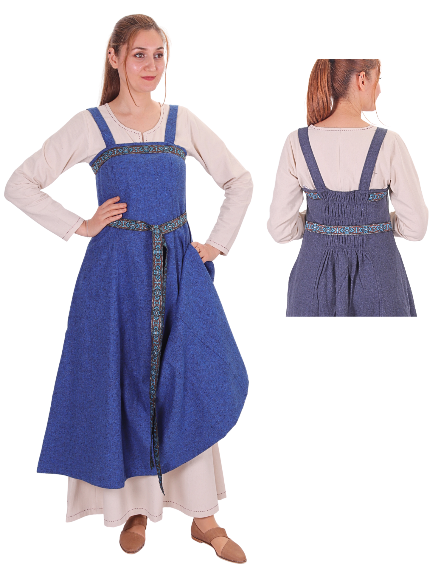 FIONA Wool P. Blue - Medieval Viking Wool Apron Dress