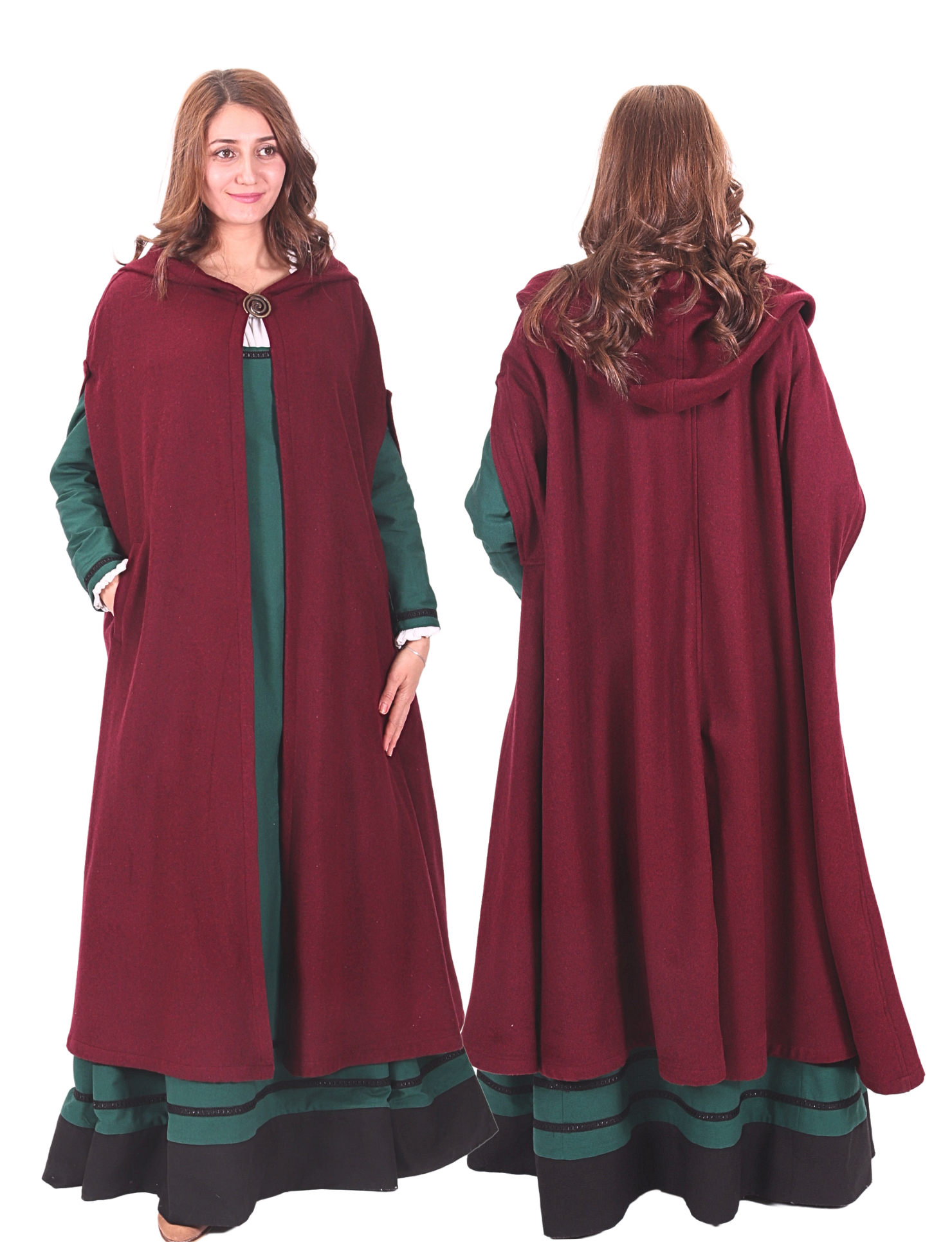 The KAYLA cloak is a stunning representation of Viking and medieval outerwear, combining historical authenticity with modern functionality. Made from a premium wool blend, it is soft, warm, and flowy, providing both comfort and elegance. Designed with functional side openings for your arms and deep, usable pockets, this cloak is perfect for cold weather and versatile for various events.