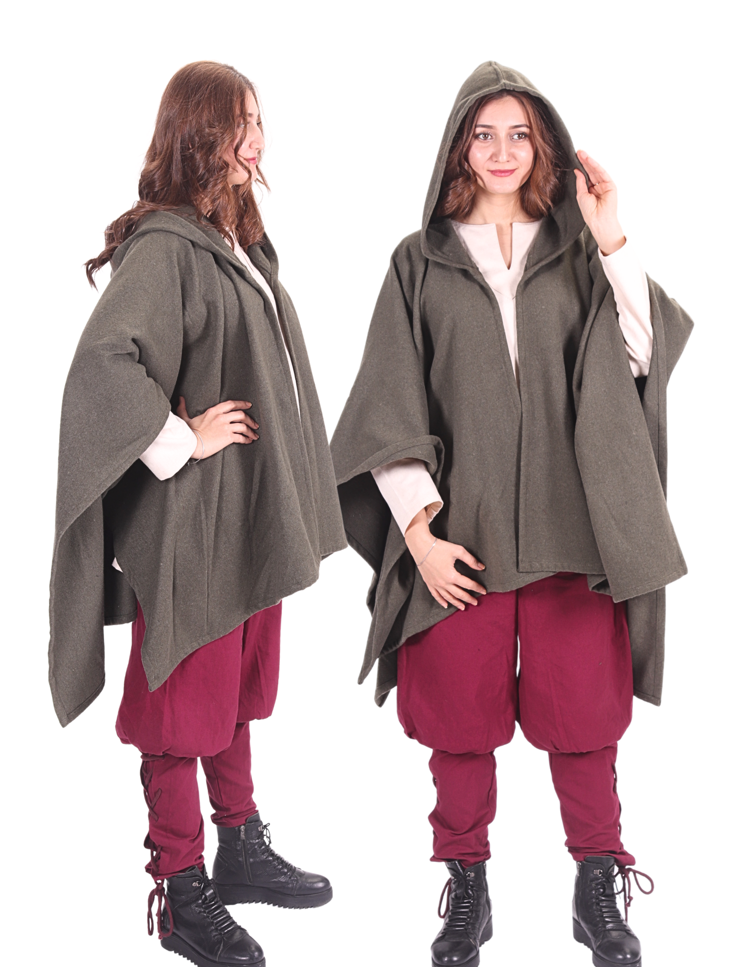 STELLA Wool Khaki – Medieval Viking and Daily Use Maxi Hooded Wool Ponch