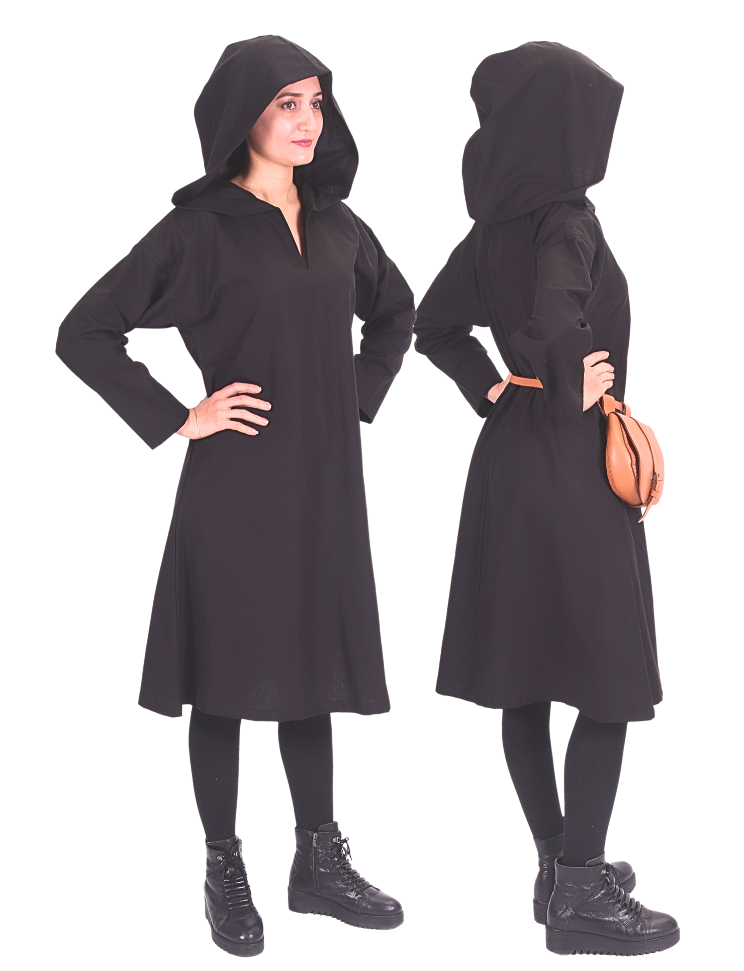 The TYRA tunic is a seamless and flowing Medieval Viking-inspired design, crafted with a rounded V-neckline and a comfortable hood. Perfect for LARP events, historical reenactments, or Viking festivals, this versatile tunic is free from slits, providing a full-bodied silhouette for a timeless look. Made from 100% Pure Linen-Structured Cotton Canvas, the TYRA tunic is durable, breathable, and crafted for authenticity. Its wide size range from S to 10XL ensures inclusivity for all body types.